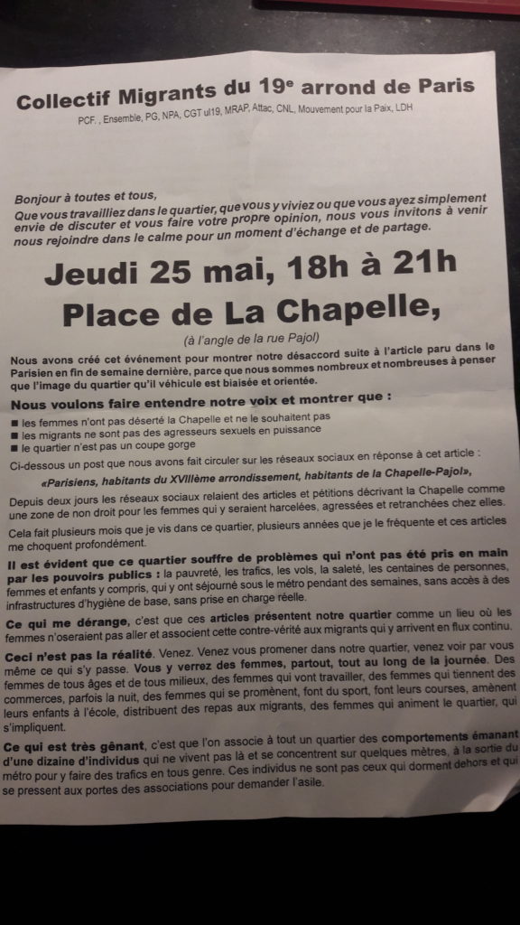 L’association United Migrants agit pour les clandestins au quotidien. L’objet de sa déclaration en préfecture affiche la couleur: “défense des intérêts matériels et moraux des migrants, demandeurs d’asile et sans papiers, l’autonomie du mouvement pour les droits des migrants, et son unité avec le mouvement démocratique, anti raciste, anti fasciste et pour l’égalité des droits”